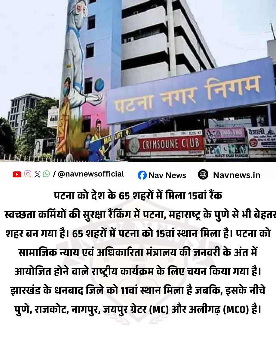 पटना का 15वें स्थान पर आना यह दर्शाता है कि शहर अब केवल कचरा प्रबंधन ही नहीं, बल्कि उस कचरे को साफ करने वाले "सफाई नायकों" के जीवन को सुरक्षित बनाने में भी गंभीर है। राष्ट्रीय कार्यक्रम में मिलने वाला सम्मान पटना नगर निगम के मनोबल को और बढ़ाएगा।