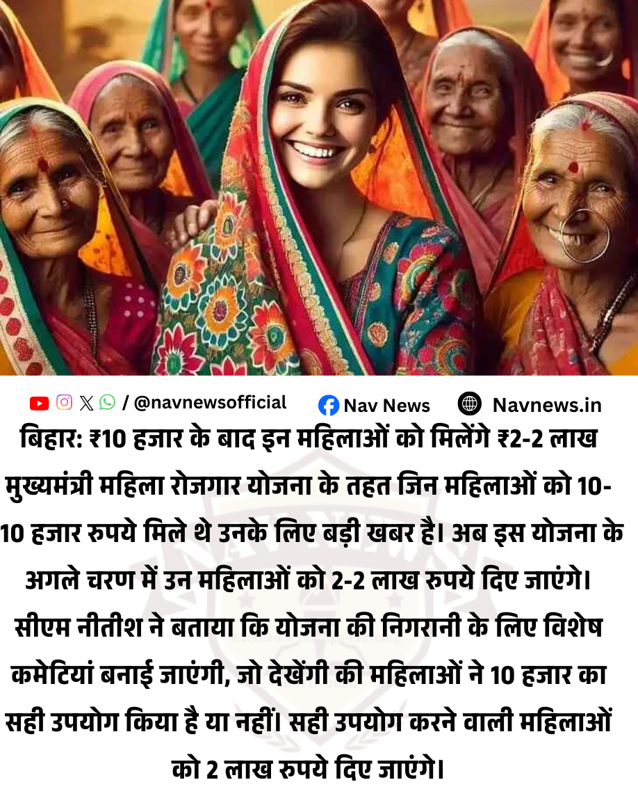 बिहार की महिलाओं को आत्मनिर्भर बनाने के लिए नीतीश सरकार की सबसे महत्वाकांक्षी योजना, 'मुख्यमंत्री महिला रोजगार योजना' (MMRY), अब अपने दूसरे और सबसे महत्वपूर्ण चरण में प्रवेश कर रही है। जिन महिलाओं ने ₹10,000 की शुरुआती राशि का सही उपयोग किया है, उनके लिए ₹2 लाख पाने का रास्ता साफ हो गया है।