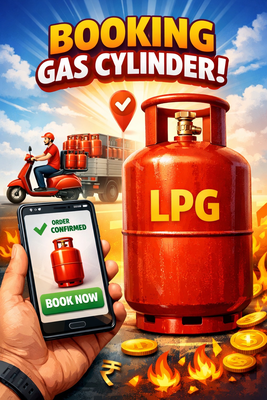 * डिलीवरी: बुकिंग के 24 से 48 घंटों के भीतर सिलेंडर आपके घर पहुँचा दिया जाएगा।